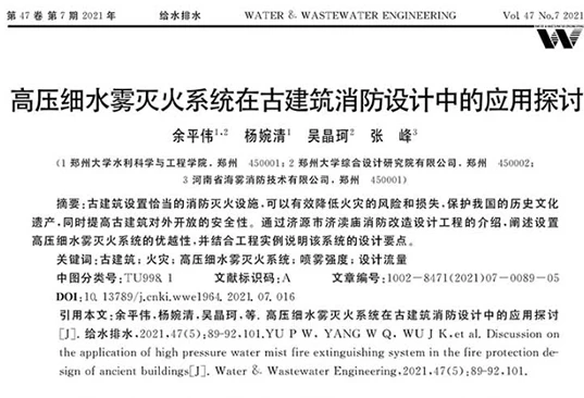 专业从事高压细水雾技术研究、全氟己酮技术研究、产品研发制造、工程设计施工及提供系统解决方案