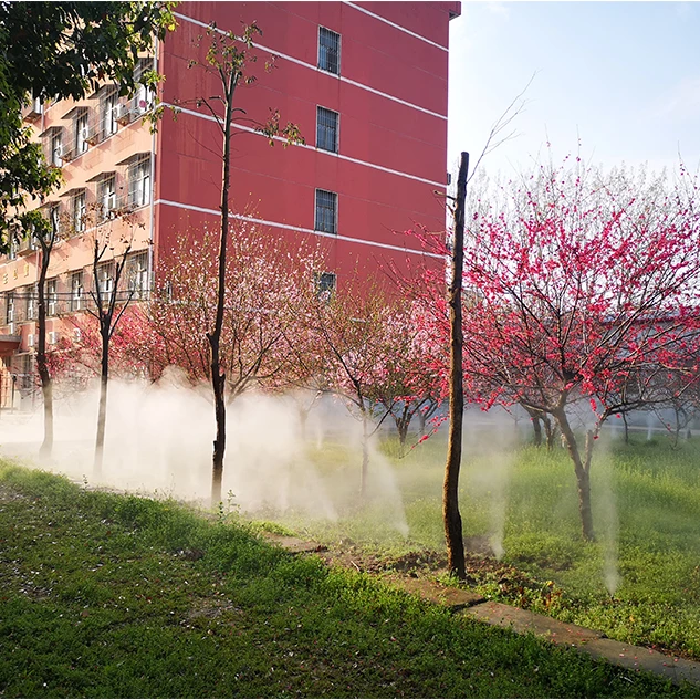 海雾森系统是河南省海雾公司自主开发的高科技环保产品,是公司将高压细水雾技术应用到环保领域研发的新一代环保产品。它是以高压细水雾技术为核心,以水为介质,利用系统主机产生高压水流,通过不锈钢高压管路由特制喷嘴喷出超细粒径水雾的智能系统。该产品功能多,节能高效,应用范围广,是目前大气环境治理、局部环境净化及园林景观设计提升的理想产品。